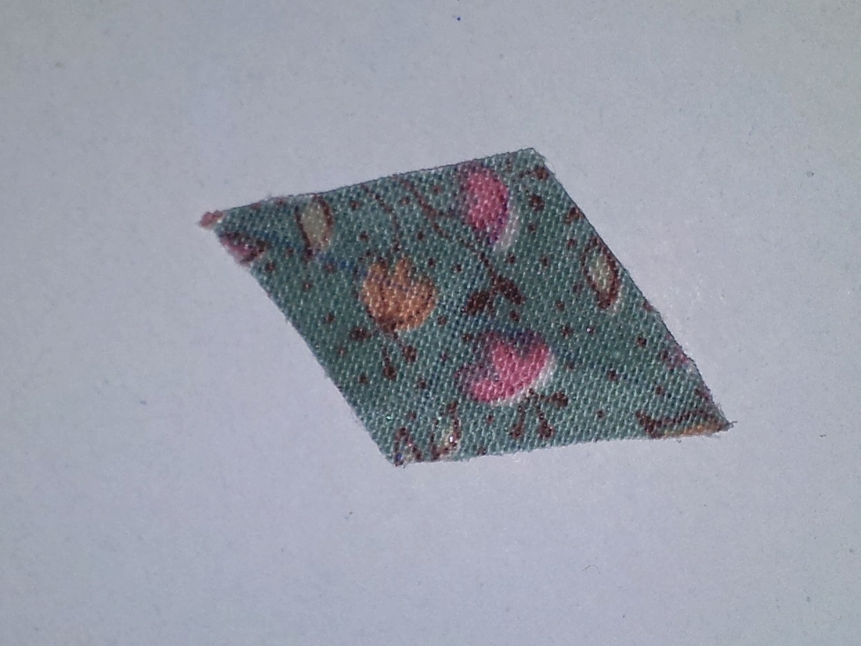Nehmt einen Stoffrest, der groß genug ist, um das Viereck viermal daraus auszuschneiden.